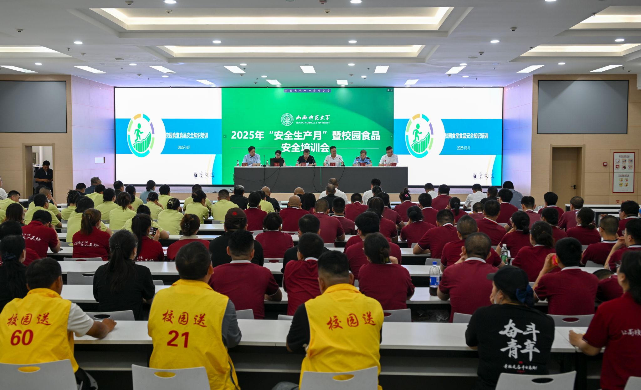 2025年6月25日,我校“安全生产月”系列活动之校园食品安全知识专题培训在毓秀学堂顺利开展。副校长白文宏莅临现场指导,太原市场监督管理局食品流通科科长王晋容、西温庄所所长郝跃中受邀出席本次培训活动。
